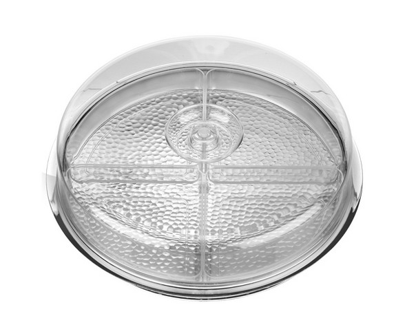 Description The Felli 6 piece multifunctional serving tray can be used as a domed pastry or pie keeper. The domed cover can also be used to hold ice and place the tray on top for keeping shrimp and dips chilled. The covered dome also serves as a chip bowl that compliments the 4 individual serving trays that are wedged shaped to form a circle. After your party or pre dinner appetizers are served, you can keep all in the fridge for later.Number of Pieces: 6Material: AcrylicPiece 1 Type: Food coverPiece 1 Dimensions: 2.38 inches (H) x 11.75 inches (W) x 11.75 inches (D)Piece 2 Type: TrayPiece 2 Dimensions: 1.25 inches (H) x 12.38 inches (W) x 12.38 inches (D)Piece 3 Type: Divided trayPiece 3 Dimensions: 1.88 inches (H) x 7.38 inches (W) x 5.25 inches (D)Care & Cleaning: Dishwasher-safe top rack onlyIncludes Dining: Lid, Sectional Tray, Serving Tray6 piece Multi-functional clear serving tray includes cover and 4 individual appetizer, dip or snack trays.BPA free, durable, shatterproof, and top rack dishwasher safe.11.75 inch round tray can be used by itself. Estimated shipping dimensions: 12.5INCH X 4.0INCH X 12.5INCH DPCI : 200-05-2133 UPC : 786348107082 TCIN : 52352076 Estimated shippimg weight: 1.6POUND