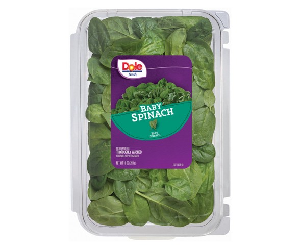 Description These tender baby leaves have a slightly bolder taste than larger, mature spinach. They are delightful used in a salad or added to almost any cooked dish. Toss with warm dressing, or sauté with olive oil to release even more flavor. Its zesty finish goes especially well with garlic flavors.PACKAGING MAY VARY BY LOCATIONContains: Does not contain any of the 8 major allergensMay Contain: Does not contain any of the 8 major allergensCountry of Origin: United StatesGood Source Of: Vitamin K, vitamin E, vitamin D, vitamin C, vitamin A, manganese, iron, folate or folic acid, calciumStore: In a Perishable location at RefrigeratedFeatures: No preservativesDietary Needs: 0 grams trans fat, cholesterol free, fat free, 0 grams saturated fatForm: Whole, piecesState of Readiness: Ready to eatPackage type: Individual item multi-servingExterior container material: PlasticNet weight: 10.0 ouncesPackage Quantity: 1Excellent Source of Vitamin AExcellent Source of Vitamin CExcellent Source of Vitamin KExcellent Source of FolateExcellent Source of Manganese, which supports energy metabolism. Estimated shipping dimensions: 3.42INCH X 12.19INCH X 8.41INCH DPCI : 211-03-0084 UPC : 071430000168 TCIN : 53520379 Estimated shippimg weight: 0.625POUND