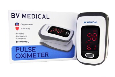 Description Ultra-lightweight with one-button operation, quickly providing real-time pulse rate and blood oxygen saturation levels Small and lightweight, very convenient to use LED screen illuminates clearly in the dark as well as in bright light and uses less battery power than standard LED displays Beep alarm for abnormal readings Automatic shut-off Switchable to perfusion index percentage display Requires 2 AAA batteries (included) Includes lanyard and soft, protective, zippered carry case 1-year manufacturer’s warranty Size: 4x6x2" Specifications Stethoscope : Not Included Height : 4" Width : 6" Depth : 2" Standard Warranty : 1-year calibration warranty Batteries : 2 AAA" Batteries Included : Yes Battery Life : Around 2000 Operations Brand : BV Medical Customizable : No Weight : 0.50 lbs. per Each