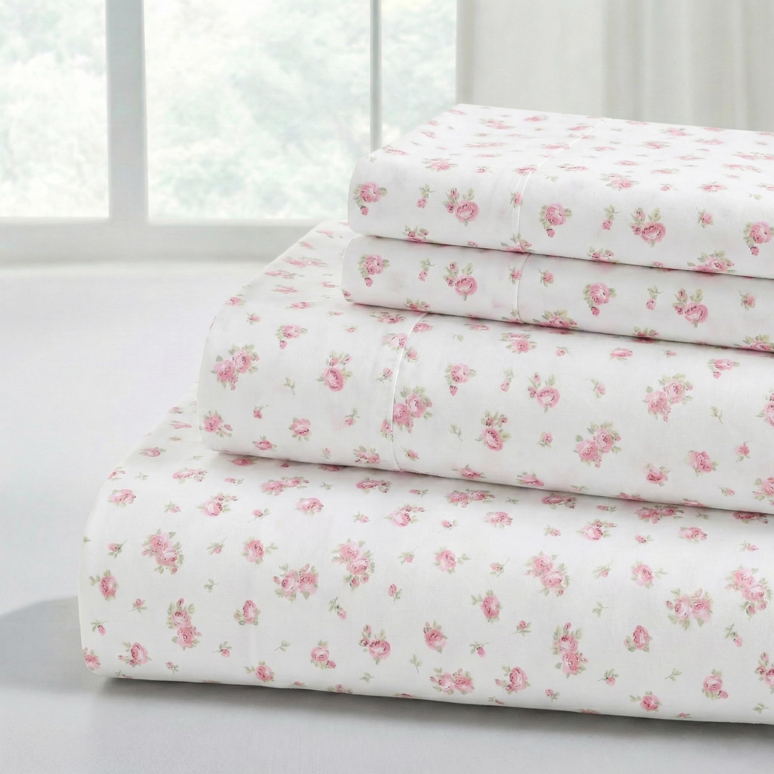 Modern Threads Soft Microfiber Printed Sheets offer a 4-piece full set including a flat sheet, deep pocket fitted sheet, and two pillowcases, crafted from 100% microfiber polyester. Designed for all-season comfort and durability, these rose-printed sheets combine breathable softness with fade-resistant technology. The fitted sheet’s full elastic perimeter ensures a secure fit on thick mattresses, while the family-operated brand’s 40+ years of expertise guarantees premium quality and elegant design.