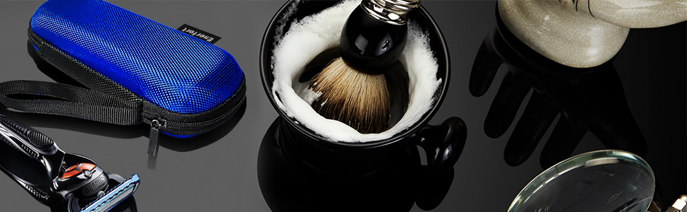 Enerfort Hard EVA Razor Travel Case Compatible with Gillette Men's Razor - Mesh Pocket for 2 Razor Blades + Lightweight Carrying Handle + Durable Zipper (Only Case) (Blue)