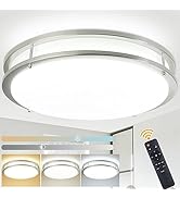 The DINGLILIGHTING Round 32W LED Ceiling Light offers 3200 lumens of bright, energy-efficient illumination with adjustable color temperatures from warm to cool white (3000-6000K). Featuring a sleek black and silver modern flush mount design, it includes a durable remote control for effortless dimming and color adjustment. Its high color rendering index ensures natural, vivid lighting ideal for bedrooms, kitchens, living rooms, and offices. Easy to install with included accessories and backed by a 12-month warranty.