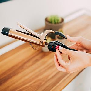 After four tries I can honestly say this isn't working for me. I have a ceramic-barrel curling wand which works perfectly well. I have fine hair which, theoretically, should be easy to curl. The barrel on this Revlon isn't ceramic, it's 'gold and copper mix' - looking at the pricetag I wonder if this is part of the problem? Even when cranked up to 200 (the max) I didn't feel this was getting hot enough at all. It didn't so much as make a dent in my straight hair. I began to avoid the clip and tried using the barrel as I would a wand, but still nothing - it's warm, sure, but for all the effect it had on my hair it may as well not have been plugged in.I think they've gone for style over substance here. Rose gold is having its moment as a fashionable colour, but that doesn't always mean you should make things with it.To check I wasn't going mad, I put this away and got my ceramic wand out. I curled my hair effortlessly at 180 degrees. I'm not going mad. This just didn't work.