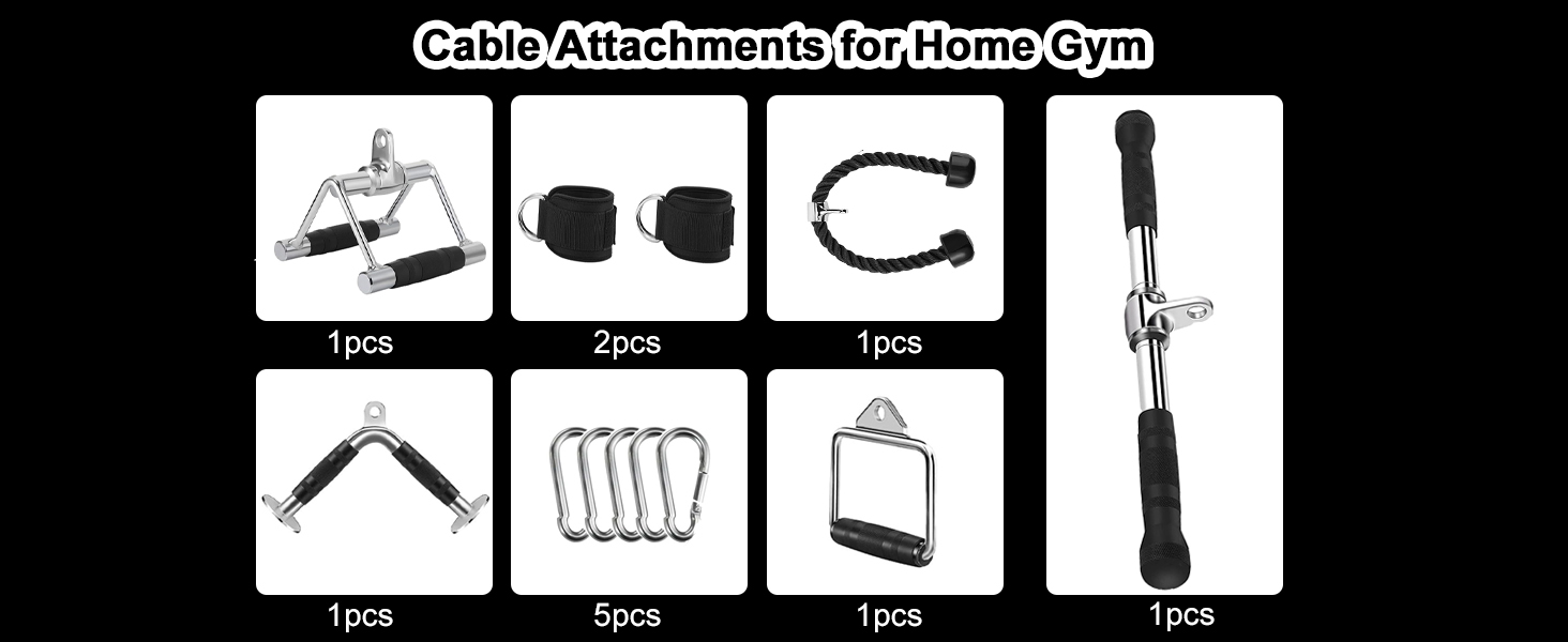 | Included Components | Ankle Straps, D-Handle, Rotating Straight V-Shaped Bar, Tricep Rope, V-Handle |