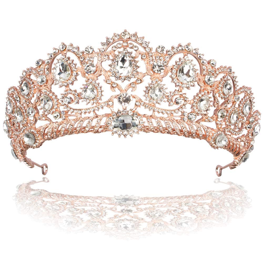 The rose gold color of this tiara is beautiful, and the rhinestones are very sparkly. I bought this tiara for my grandmother's 93rd birthday, but she was unable to wear it as the metal is quite heavy and the tiara doesn't stay very well on the head. Perhaps if bobby pins were used, it would stay on properly, but the weight of the tiara is something to take into account, as well.Overall, it is a beautiful tiara, but unless you have a lot of hair to pad your head and bobby pins to hold it on, it may be difficult to wear.