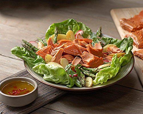 The Copper River Sockeye Salmon arrive at our smoke house in Cordova, Alaska within 24 to 36 hours from the time they are caught. The fish are filleted by hand to ensure the highest quality possible, then put into our traditional curing brine, which gives it the delicious taste that our smoked salmon is famous for. The cured salmon is then smoked to perfection with natural Alderwood. Finally, the salmon is hand packed into a gold foil pouch and cooked in its natural Omega-3 oils. Simply place onto crackers with cream cheese and serve!