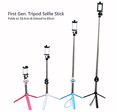 Specifications: -Tripod Selfie Stick Gen. 1 -Color: Black, White, Red, Blue (You can choose the Color your like) -Length: Folds to 18.4cm and Extend to 83cm -Phone Holder Clip: 58-75mm -Weight: 135g - Pole: Stainless steel made, durable and good-looking Hard plastic clamp, Ergonomics and nonslip handle design cause no burdens. - Rubbery end to grip the cellphone tight, allow you to take steadier and sharper picture and videos by avoiding shakes and vibration. - Portable Bluetooth remote control shutter designed for taking continuous shooting to eternalize the happy time conveniently. - Unique commonly used mount is suitable for using professional sports camera like Gopro. -This new release Hands Free Bluetooth Tripod Selfie Stick is perfect for you. Package Included: 1x Tripod Selfie Stick Gen. 1 1x Mini USB LED light (Gift)