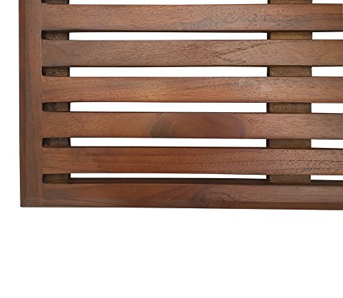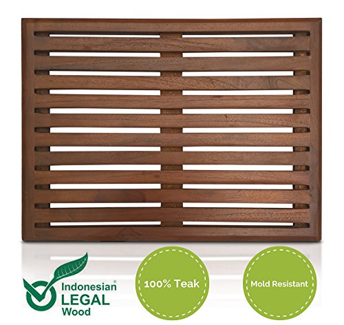For use in outdoor showers or indoors as a bath/shower mat (outside the tub) on a flat surface (not for in bath tub) Adorn Decor Teak mats will add a spa like feel to any environment. Mold Resistant - Better than Bamboo Teak is a naturally mold resistant wood that is perfect for use in high moisture environments. Unlike Bamboo, Teak will NOT mold after a few weeks of use. For centuries Teak wood has been in used in boats as the go-to wood species for marine applications. With proper care, you can rest assured that your Adorn Decor Teak shower mat will be mold free for years to come. Hand Made Frame Design Each one of our shower mats are hand by our expert wood craftsmen to ensure that our products adhere to the high quality standards at Adorn Decor. These boards will add a luxurious feel to any bathroom or outdoor shower to give it that "spa like" look and feel. Legally Sourced Tectona Grandis Species Teak Our shower mats are made with the best Teak species (Tectona Grandis) and is sustainably harvested from farm grown sources in Indonesia. This guarantees that our shower mat production uses conflict free wood and does not affect the natural habitat of the Indonesian forest. What's in the Box 1 Teak floor mat 7 Rubber feet 7 Stainless Steel screws Care & Use Instructions - Rubber feet require assembly on to the board using the provided stainless steel screws. If desired, rubber feet should be applied to the 4 corners of the board. The remaining 3 must be installed down the center of the board - When performing a quick cleaning, apply water with a soft bristle brush (a mild soap solution can be useful as well) and lightly scrub the teak surface as well as the underside. Then rinse the teak surface with clean water and allow to air dry. We recommend quick cleaning before the first use. - Weight limit - 300 lbs