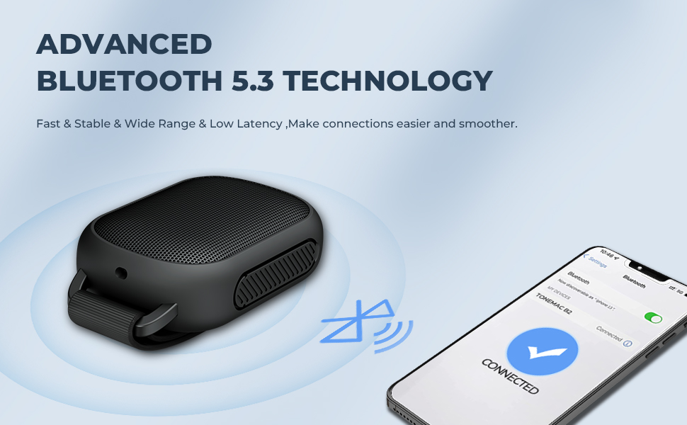 The TONEMAC Portable Bluetooth Speaker combines a 10-hour rechargeable battery, IP67 waterproof and dustproof durability, and advanced Bluetooth 5.3 connectivity. Its enhanced bass technology with stereo drivers and a passive subwoofer delivers powerful sound in a lightweight, compact design featuring a convenient carabiner for on-the-go lifestyles.