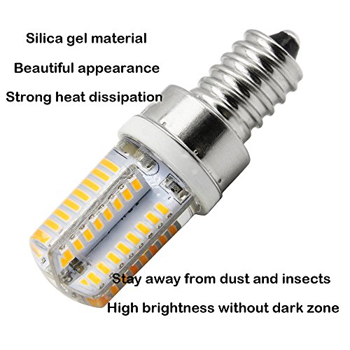 Specification: Base Type:E12 Dimmable:yes Lamp Power:5W Type of Bulb:LED Condition:Brand new Lifespan:30000 hours Beam angle:360 degrees Input Voltage:220V-240volts Specific Uses:Indoor use only Material: made of non-toxic silicone Dimensions: about 20 x 20 x 54mm Color rendering index (CRI): >85 Ra Energy efficiency class A+ CE RoHs Color Temperature:Warm White 3000K Incandescent Equivalent:40 Wattage Halogen Bulbs Bulb Features:It does not emit UV or infrared radiation,And not including lead,mercury or other harmful pollutants. Package include:2pcs of 5W LED Light bulbs. Features: Universal custom energy efficient lighting and environmentally friendly. Save power more than 80% by ordinary bulbs. Easy to install,Can be easily fitted. Provides approximately 400 lumens of light,illuminating your environment around you. Use original Daylight White when you need a light without glare or harsh shadows. Specifications Condition:Brand new and tested. Product Features: The bulb is designed,with crystal clear non-toxic silicone body which improve the light emission capability and heat conductivity. ensuring the products quality and reliability throughout its life time. This E12 bulb uses only 5 watts to emit the same amount of light as a regular 30watt halogen bulb but saves more than 80% energy cost. It has an average life of 30,000 hours,above 10 times lifespan of normal halogen lamps.LED bulbs E12 is an environmentally friendly product,it does not emit no UV or infrared.Can be widely used in bedside lamps,wall lamps,interior lighting,and so on.