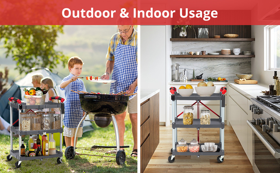 Towallmark Portable Folding Service Cart 3 Tier Folding Utility Cart | Desertcart Hong Kong