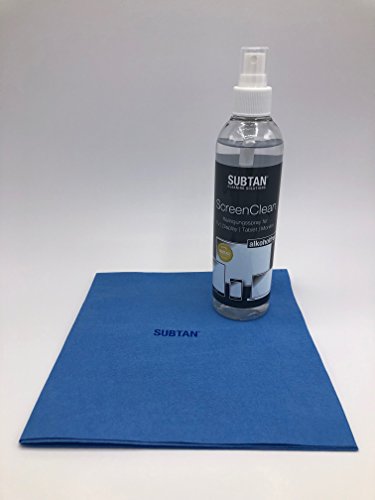 Use Apple iPhone, iPad, watch, iMac, MacBook Pro and other mobile phone, smart phone, tablet, notebook, laptop, PC, touch screen, TFT LCD Monitor, LED and TV with the combination of Subtan Screen Clean Spray Foam Cleaner and the Subtan Premium Cleaning Wipe. Free your surface your electronic devices everyday with Subtan Screen Clean Cleaner Spray of dirt the set consists of 250 ml Subtan Screen Clean Spray does not contain alcohol plus 1 x Subtan Premium Micro Fiber Cleaning Cloth Subtan Screen Clean Spray contains no alcohol and is better for the Sensitive Surfaces Of Your Electronic Devices Please note prior to use to clean Manufacturer's Instructions for your sensitive display and finishes your electronic devices is the Subtan Screen Clean Spray does not contain alcohol the ideal product for cleaning Streak-free and Rückstandslosen. No streaks or streaks after application. The combination of Subtan Screen Clean Spray Foam Cleaner and Subtan Premium Wash Cloth, you will achieve a perfect cleaning result. The Subtan Premium Cleaning Cloth ensures a gentle cleaning and streak-free displays and screens of your sensitive electronic devices. Cloth Composition: 70% Polyester/30% polyamide application: Subtan Screen Clean Spray Nebelfeucht on the Subtan Premium Wash Cloth spray to prevent your screen with the Nebelfeuchten cloth area clean and wipe with a dry cloth place. Important Note: Please be reminded that the cleaning Manufacturer's Instructions on your devices. Cleaning products always take care. The Read the label and product information before use. Please keep the cleaning cloth after every use in the original retail packaging (where packaging is applicable) on in order for it out dirt and debris. A Dirty Cloth can cause scratches and damage.