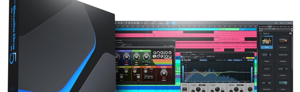 The PreSonus Audiobox 96 Studio 25th Anniversary Edition is a bus-powered USB 2.0 audio and MIDI interface featuring a built-in analog mixer for zero-latency monitoring. It includes a microphone, headphones, and a premium software suite compatible with Windows and popular DAWs like Ableton Live Lite and Studio One Artist. Real-time audio time stretch, resample, and transient editing tools empower professional-grade sound production in a compact, all-in-one package.