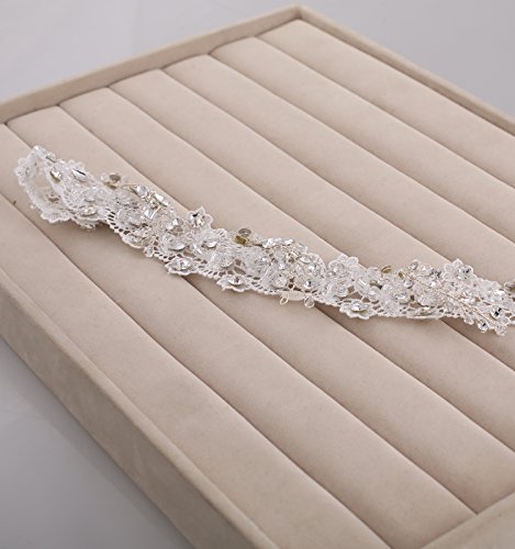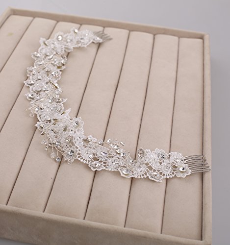Crystal lace wedding head piece, bridal forehead hair piece are made with intricate lace flowers, and trimed with delicate crystals. Two combs adorn at two ends of this flower lace hair band. It¡¯s