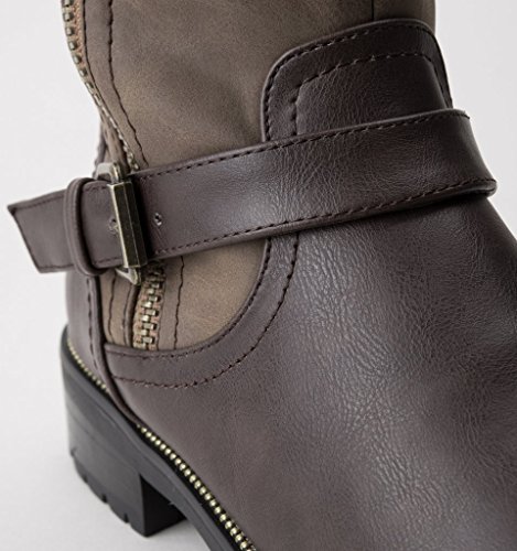 Divaz MANSON Ladies Faux Leather Riding Boots Brown Shuperb present a stylish riding boot from Divaz, with a stunning imitation leather look and a warm microfibre inner lining. The knee-high shaft contrasts nicely with the darker colouration of the vamp, whilst, fastening securely to enclose the warm faux fur and microfibre lining around your feet. The ankle buckle fastening ads an adjustable fitting, whilst underneath a chunky rubber grip commando sole unit keeps you steady on your feet. Upper: Synthetic Leather Lining: Microfibre Sole: Rubber