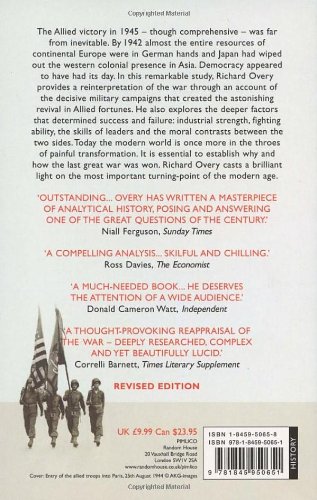 The Allied victory in 1945 - though comprehensive - was far from inevitable. By 1942 almost the entire resources of continental Europe were in German hands and Japan had wiped out the western colonial presence in Asia. Democracy appeared to have had its day. In this remarkable study, Richard Overy provides a reinterpretation of the war through an account of the decisive military campaigns that created the astonishing revival in Allied fortunes. He also explores the deeper factors that determined success and failure: industrial stength, fighting ability, the skills of leaders and the moral contrasts between the two sides. Today the modern world is once more in the throes of painful transformation. It is essential to establish why and how the last great war was won. Richard Overy casts a brilliant light on the most important turning-point of the modern age.